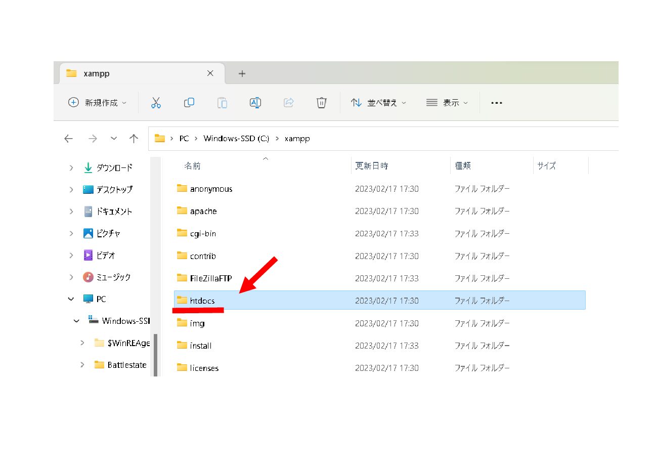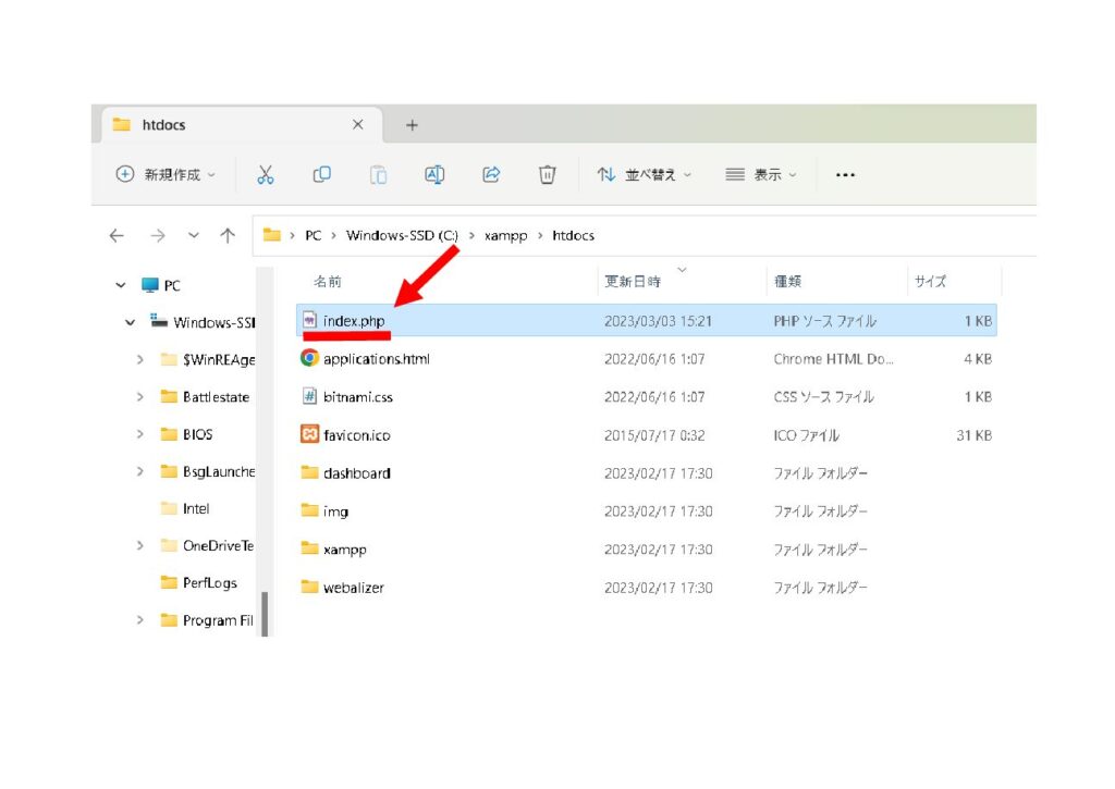 作成が完了したらC:/xampp/htdocのフォルダ内に設置し、