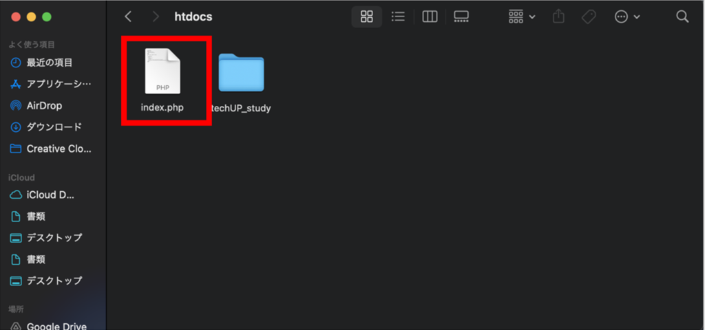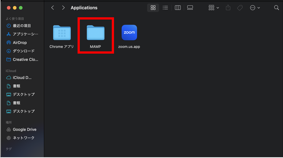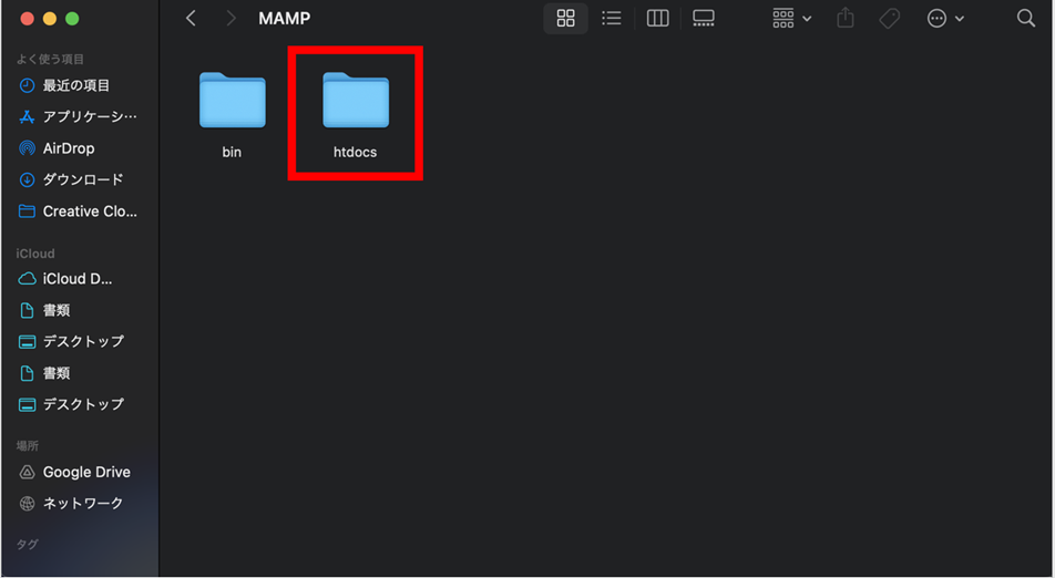 作成が完了したらApplication/MAMP/htdocsのフォルダ内に設置し、