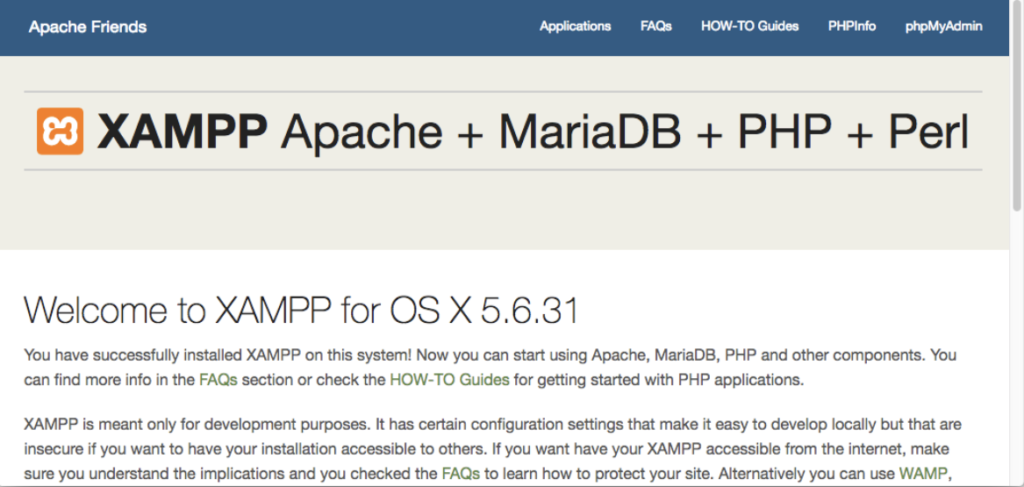 詳しいインストール方法は、こちらにあります。XAMMPの使い方