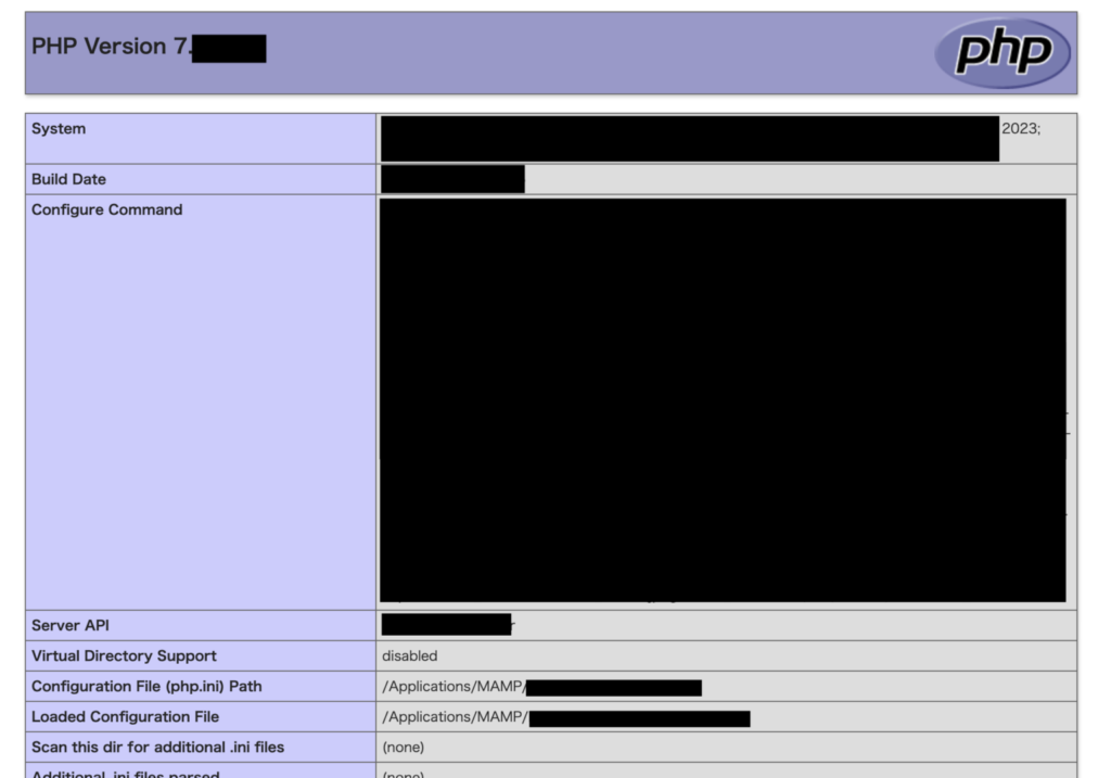 「PHP > phpinfo」を押下し、下記画像が表示されているか確認してください。