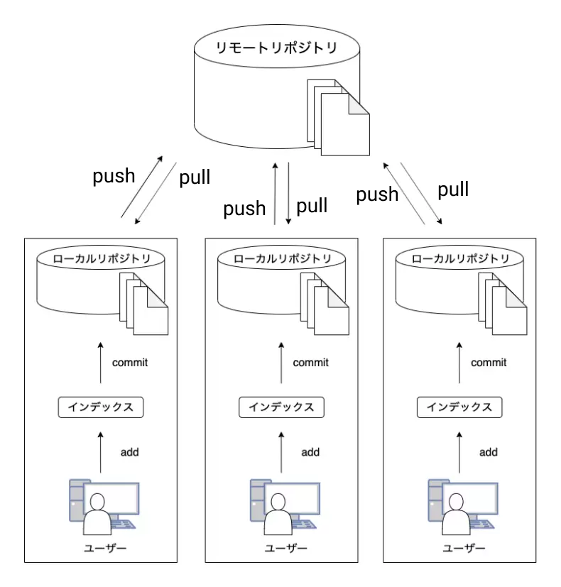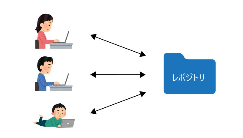 gitの分散型管理システムまでは、サーバ上の1つのフォルダを共同で使っていました。これを集中型管理システムといいます。