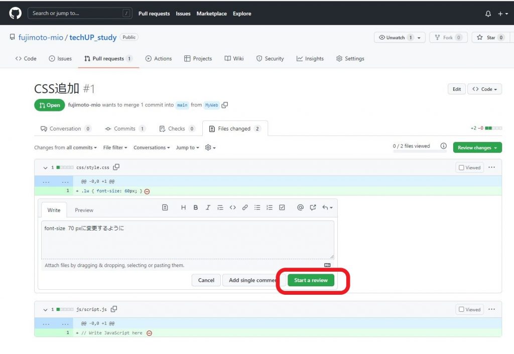 gitHubでレビュー(Review)してもらいマージする