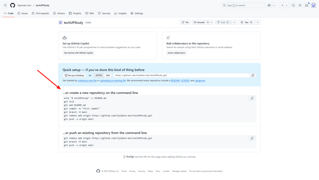 https://github.com/[アカウント名]/techUPStudy.git |