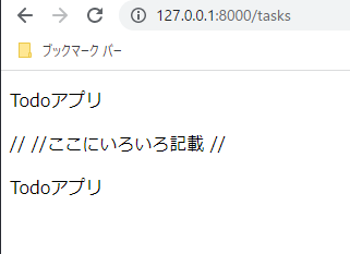// 以下のコマンドを実行 php artisan serve ブランザを表示してください。 // http://127.0.0.1:8000/tasks |
