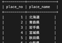 m_placeテーブル作成後、テーブルの中身を確認した例