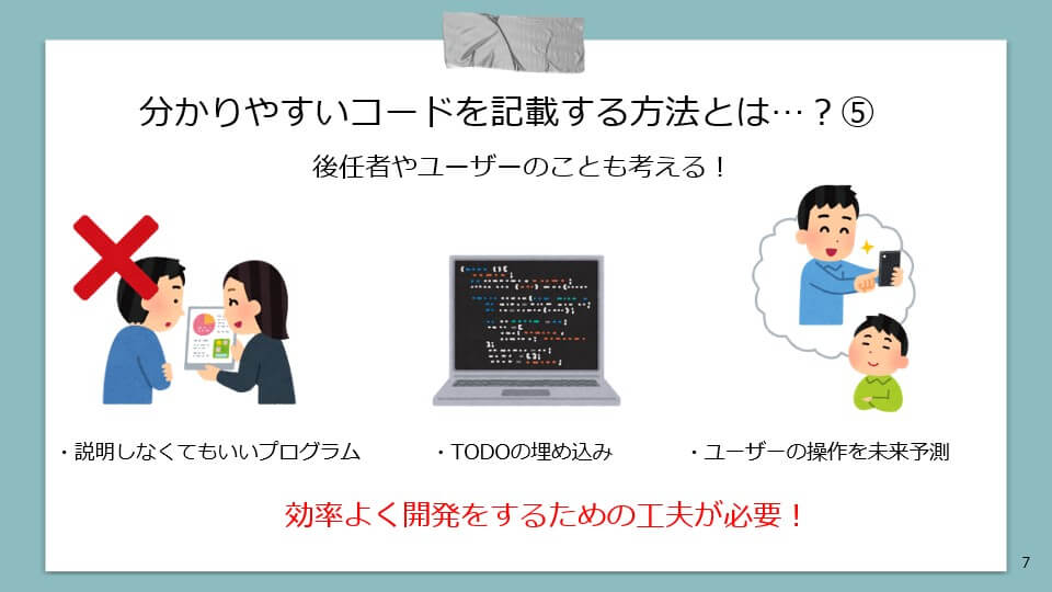 日々の開発でも、「将来を見据えたコード」を意識しましょう。