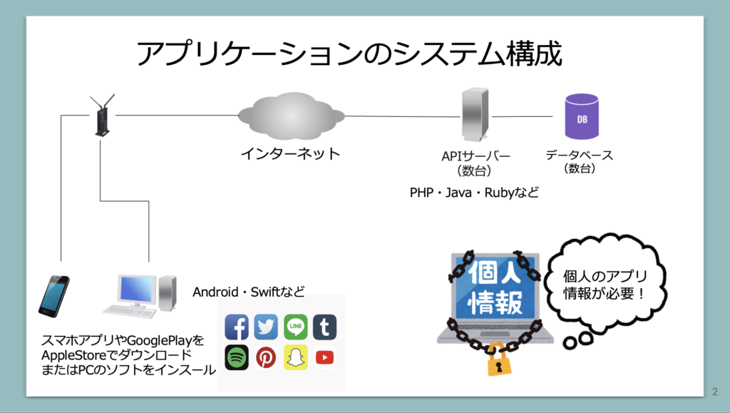 ただしその際にAPIサーバーとアプリの間には、個人のアプリ情報があることと、