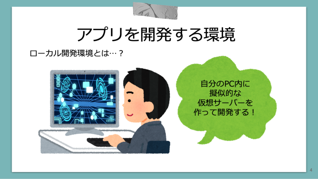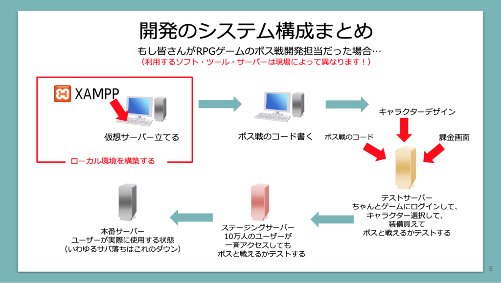ローカルサーバーは最初にコーディングする場であり、ローカルのサーバーから、アプリ開発を行っていきます。(これがXAMPPやMAMMPのこと)