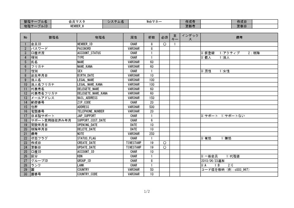 | 詳細仕様書 | 画面や機能の具体的な動作条件などを記載 |